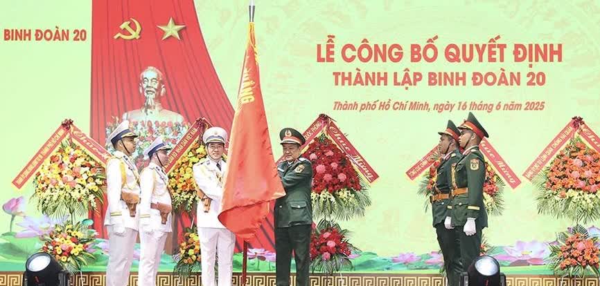 2025年6月16日越南20兵团在胡志明市举行成立仪式。越共中央委员、中央军委常