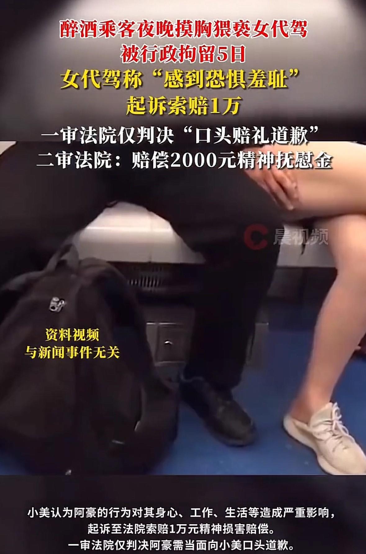 安徽宿州,女代驾半夜接到醉酒男顾客订单,安安稳稳的将顾客送到目的地,心想男顾客尽快下车,她就可以结束订单离开。岂料男顾客竟然伸出手摸向女代驾的胸部,还出言猥 亵。女代驾赶紧报警,男顾客被拘留5天。可女代驾在那之后总是回想那天发生的事情,无法正常生活,于是起诉索赔1万元精神损害赔偿,一审小美败诉,二审给出不同看法。 在2025年1月6日的晚上,小美的手机响了,她赶紧掏出手机打开软件,果然有订单找上了门,这是她每天晚上都特别想要听到的声音。 小美虽然是个女孩子,但却义无反顾的选择了代驾的工作。家里人不是很支持,但对于小美的选择,也只能是尊重。 冬天的晚上很难熬,叫代驾的人也不像夏天那样多。小美能够接到订单,她是很高兴的。 但是看到客户的时候,小美心里一沉,是个男性顾客,而且还醉醺醺的。 小美虽然有点害怕,但她还是很有职业素养的,跟客户确定好目的地和路线后,就坐在了驾驶座上。 很多醉酒的顾客都会坐到后排的座位上,但偏偏这个醉酒男顾客却坐在了副驾驶的位置。车子都是顾客的,小美也不好说什么,干好自己的工作比什么都强。 小美安安全全的将顾客送到目的地后,让男顾客下车,小美就可以结束订单结算了。 岂料男顾客竟然伸出手,朝着小美的胸部摸了过来。一边摸一边嘴里还不干不净的猥 亵小美。 小美赶紧下车并拨打报警电话,她怕男顾客做出更加过分的事,小心翼翼的等着警方的赶到。 派出所出警很快,小美看到民警后赶紧对民警讲述事情的经过,民警走到副驾驶的位置,询问男顾客是不是真的伸手摸了小美。 男顾客满口酒气的承认了,他并不知道自己即将面临的会是什么。民警将小美和醉酒男顾客一同带回派出所,经过调查后,确认男顾客对小美存在猥 亵行为。 根据《治安管理处罚法》第44条的规定:猥亵他人的,或者在公共场所故意裸露身体,情节恶劣的,处五日以上十日以下拘留;猥亵智力残疾人、精神病人、不满十四周岁的人或者有其他严重情节的,处十日以上十五日以下拘留。 男顾客阿豪在醉酒的情况下,未经小美的允许,就摸小美的胸部,并出言猥 亵。民警依法对阿豪做出行政拘留5日的处罚。 虽然阿豪得到了应有的惩戒,但是这件事对于小美来说却没有过去。 小美在无数个时刻都会回想起在那个冬夜发生的事情,她不是刻意要去想起,但是就是忘不掉,已经很严重的影响到了小美的生活。 而且小美被顾客猥 亵这件事很快就传得沸沸扬扬,对小美造成了很坏的影响,小美的家人也深受其害。 女代驾本来就不好干,有了这样的事情发生,在同行的眼里很看不起小美,就好像是小美故意去引 诱了一样。 小美实在没有办法,只能将阿豪起诉到法院,要求赔偿1万元精神损害赔偿金。 根据《民法典》第1183条的规定:侵害自然人人身权益造成严重精神损害的,被侵权人有权请求精神损害赔偿。 因故意或者重大过失侵害自然人具有人身意义的特定物造成严重精神损害的,被侵权人有权请求精神损害赔偿。 阿豪认为自己已经因猥 亵被公安部门行政拘留5日,已经是受过惩罚了,就不应该再有赔偿的说法。 而且就是摸了一下,就索要1万元的精神损害赔偿,怎么能够证明精神损害达到了1万元的赔偿标准呢? 一审法院认为,虽然阿豪对小美的所作所为的确对小美造成了侵害,而且侵害到了小美的人格权。 但考虑到事发当时是在车辆内部,较为隐私的环境下,阿豪对于小美的行为并没有很多人看到。 而且阿豪持续猥 亵行为的时间并不长,所以一审法院不支持小美索要精神损害赔偿的要求,认为口头道歉比较合适。 一审判决后,小妹不服提起上诉,二审法院给出了不同看法。 小美与阿豪同处在一个狭小的空间里,而且两个人此前并不认识,阿豪就无缘无故的伸手摸小美的胸部,并进行言语侮辱。 小美面对醉酒的陌生男性如此的行为,内心的恐惧和羞耻感不是言语可以解释的。 而且时候小美的遭遇被亲朋好友知道后,对小美的精神受到了很大影响,影响到无法正常生活和工作也是人之常情,符合常理。 因此二审法院最后判决,阿豪除了对小美进行口头道歉外,还应该赔偿小美2000元。 人言可畏,小美遭受到的不仅是身体上的侵犯,更多的是对其精神的一种长期侵害。 小美身为一个代驾司机,常年都是深夜在外面跑,本来工作性质就会成为他人的谈资,再遇到这样的事情,别人就只会谈论小美的是非,而对于阿豪这个人是断然不会去提及的。 所以二审法院最终的判决,对于小美来说,是一种肯定,更是一种救赎。