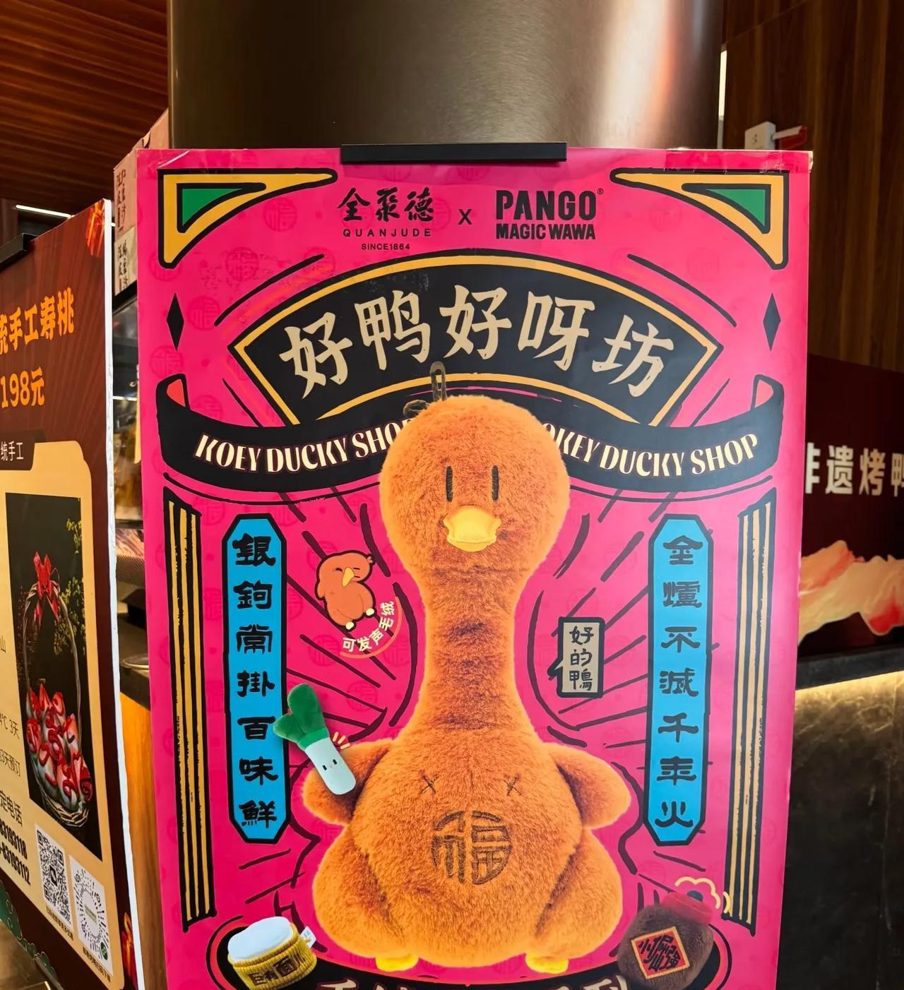 去和平门烤鸭店的朋友发现老字号创新了,出了新周边!全聚德这毛绒玩具鸭子摇晃它还会