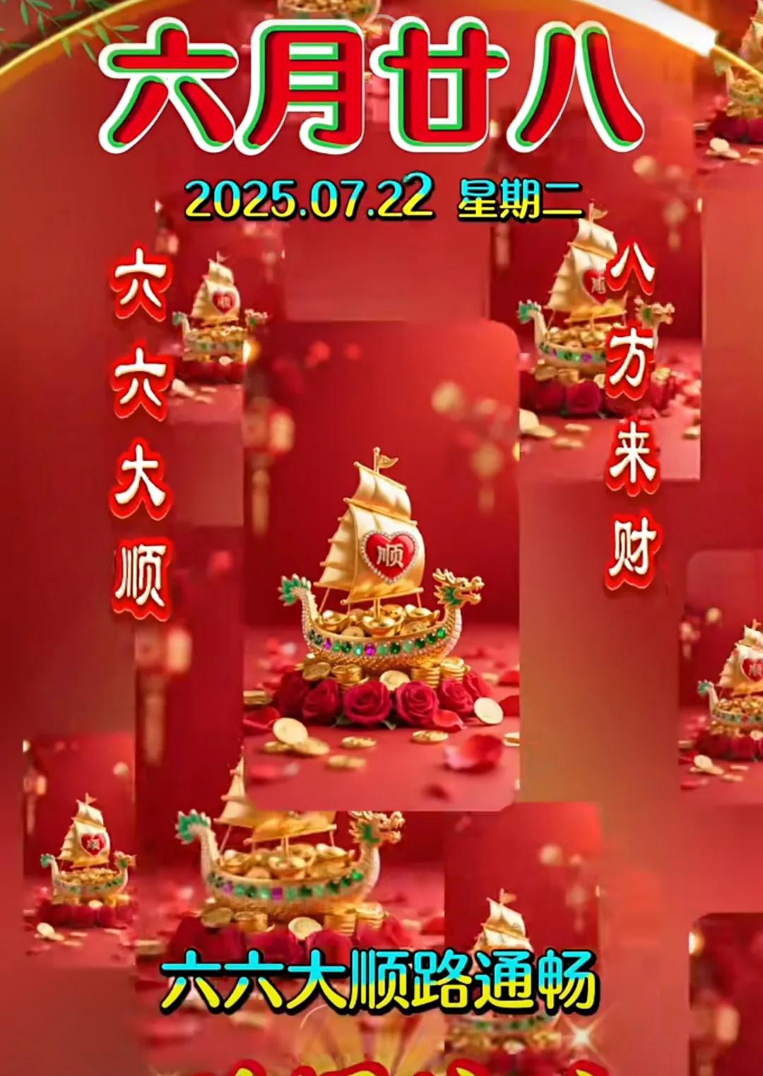 今天是农历六月廿八 八方来财 六月廿八喜洋洋 六六大顺路通畅 八方来财福运旺 日