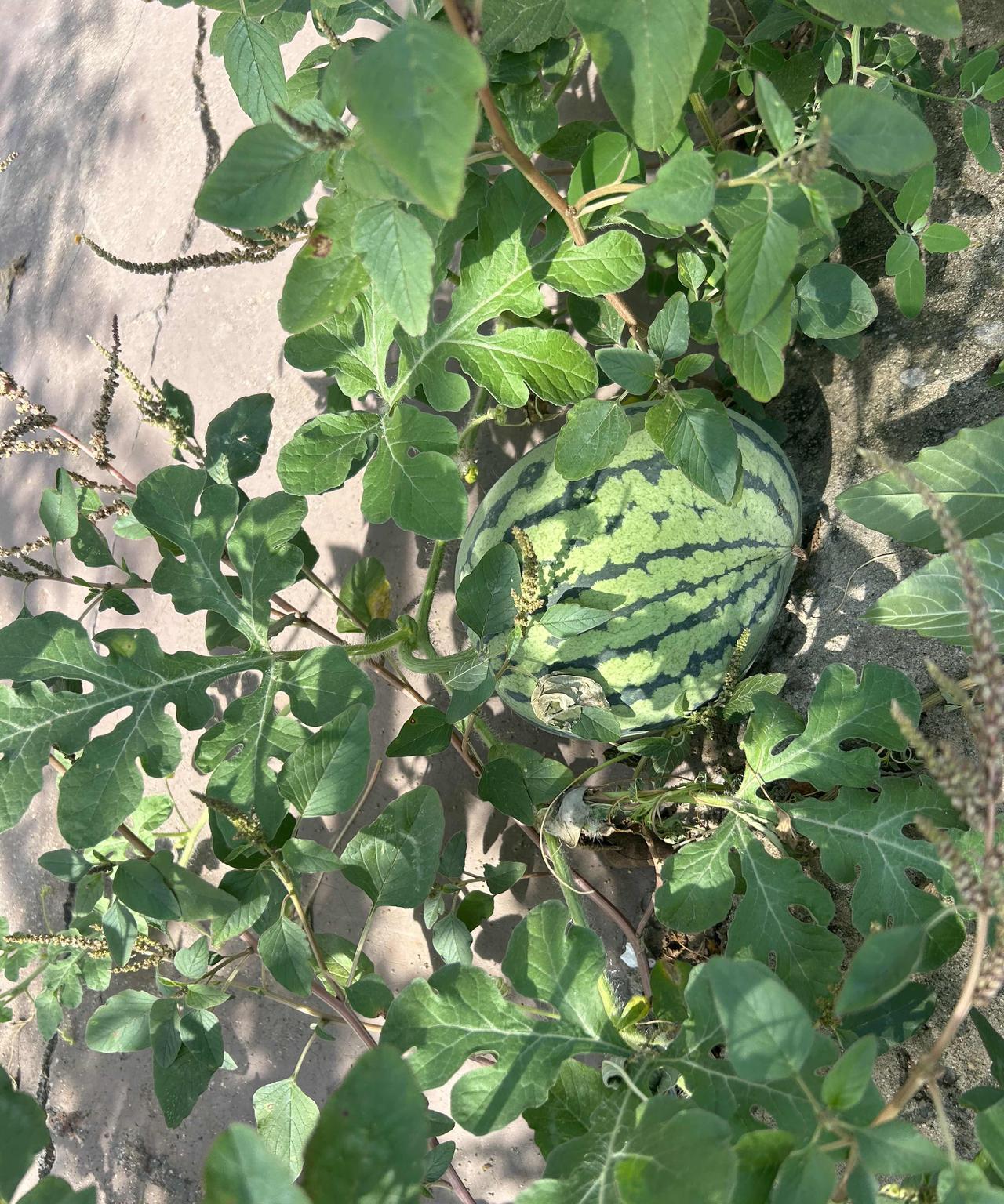 生活碎片之日常〈五〉 今日,有二个意外之获,遂记之。 其一:于工厂大门东侧栏杆外, 瞥见杂草丛中, 竟伏着几枚野生西瓜。 挑最大的一只轻叩, 声沉而实,殆将熟矣。 此地面本非肥沃之地, 瓜秧从洋灰缝隙中生长, 无人施肥,亦无人浇灌, 偏生得如此水灵又壮硕, 倒也令人称奇。。。 其二:我所植于厂内的西瓜, 本就硕果无几, 其中一颗, 今日发现竟自裂为二, 瓤色青白, 望之殊为可惜。。。 野瓜生于瘠土,无人问津, 倒结得圆硕丰满, 采摘在即! 厂瓜日日经心, 水肥不缺,备受呵护, 反落得这般下场。 此中道理,细想亦非偶然, 世间物事,每每如此, 过分的殷勤,有时反成戕害; 而放任自然,倒能成就一段生机。。 人言"家花没有野花香", 今乃知"家瓜没有野瓜甜", 亦是实情。。。[捂脸] (今天和旺财招财于厂门口东侧玩闹,无意中发现几棵野生西瓜,长势良好;又听门岗老史呼唤,道怎么一个瓜给裂开了。 同瓜,又不同瓜,一时感慨,遂做此文[作揖][微笑]) #夏天生活小记# #西瓜地里的乐趣# #生活碎片记录# #夏天生活小记# #生活碎事记实# #生活记事随记# #西瓜随手拍#