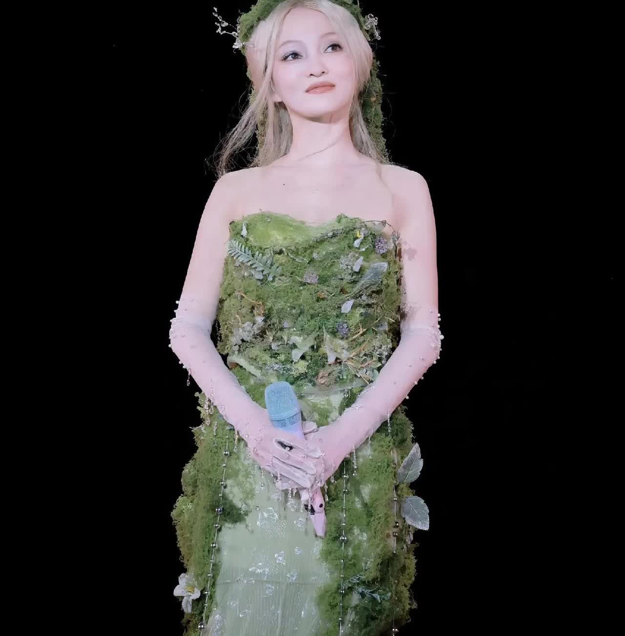 我估计伍佰的心都要碎成渣渣了, 网友们说张韶涵的造型师把她当精灵, 王心凌的造型师把她当公主,伍佰的造型师把他当流浪汉。 张韶涵的南昌演唱会,森林精灵的造型真的美呆了!一条绿色的抹胸长裙,裙子上各种水滴鲜花树叶的装饰,与头上的草环相互呼应,真的就像精灵来到了人间。 特别是她的美甲也做成了水滴造型,简直细节拉满,当她脸庞银灰色的长发随风飘动时,感觉我们的心也随之发颤。 伍佰老师啊,你可真的要学学啦,虽说你的演唱会服装很有气场,但也可以充分发挥造型师的创造能力,什么时候也能让我们看到不一样的你呢?