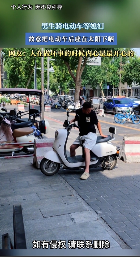 信息来源:《男生骑电动车等媳妇,故意把电动车后座在太阳下晒。》