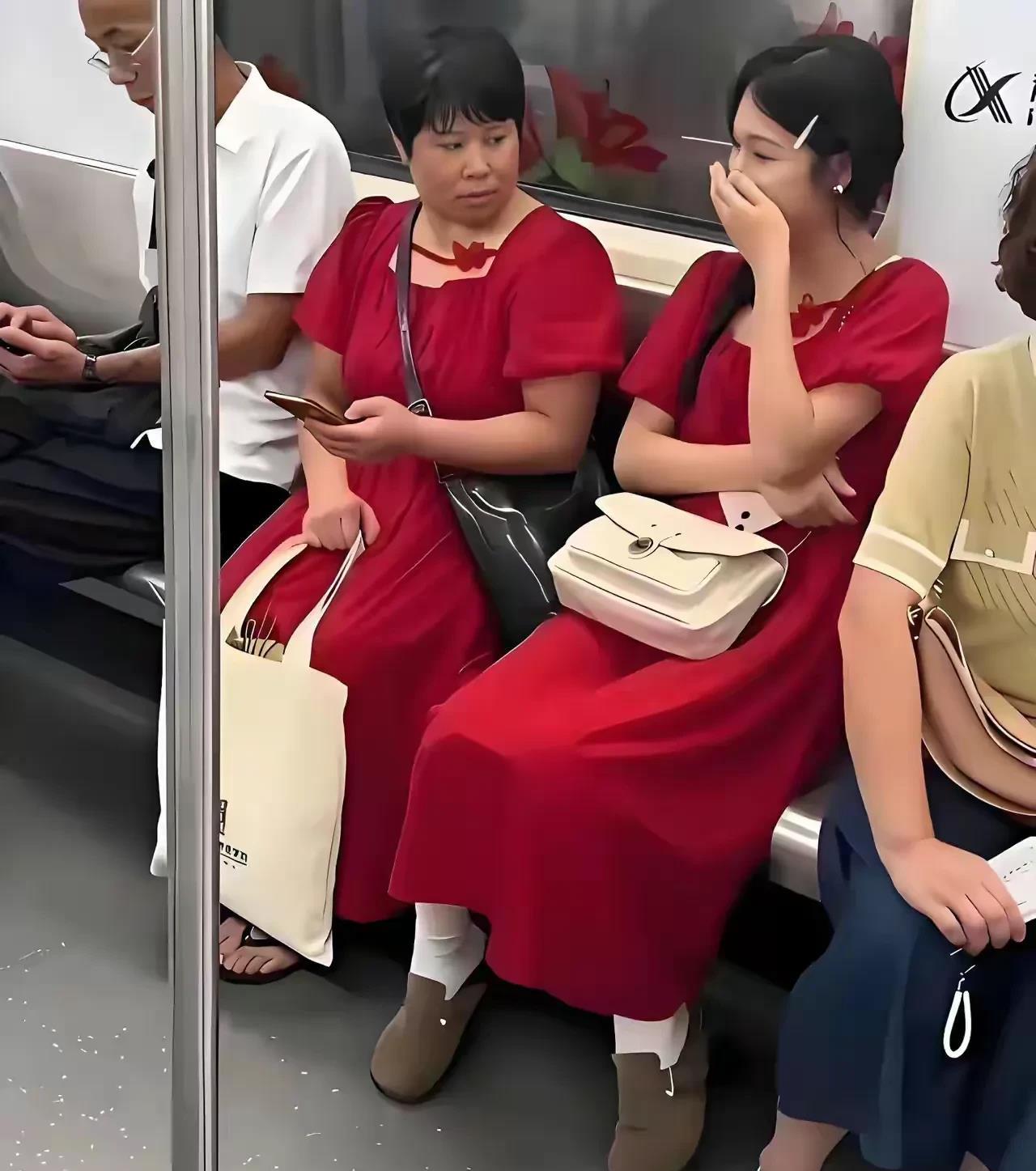 一看就是母女,天下哪有这么巧的事,就算撞衫也绝不会是坐在一起