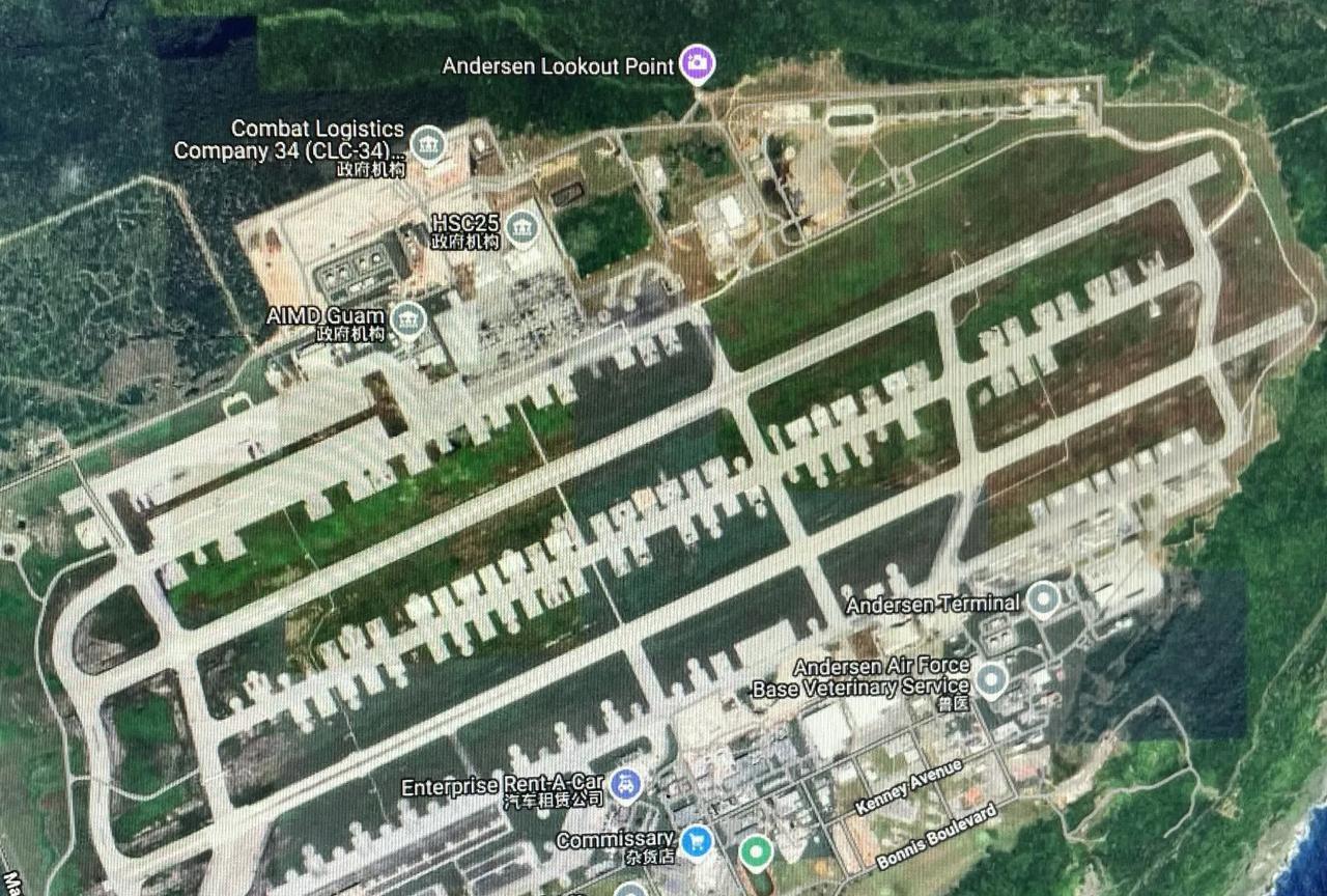 这是美军位于关岛的安德森空军基地,距离中国大约3000公里,美军在此基地部署时大