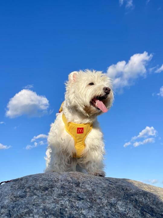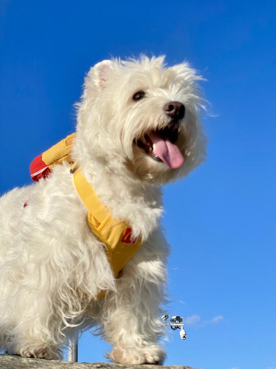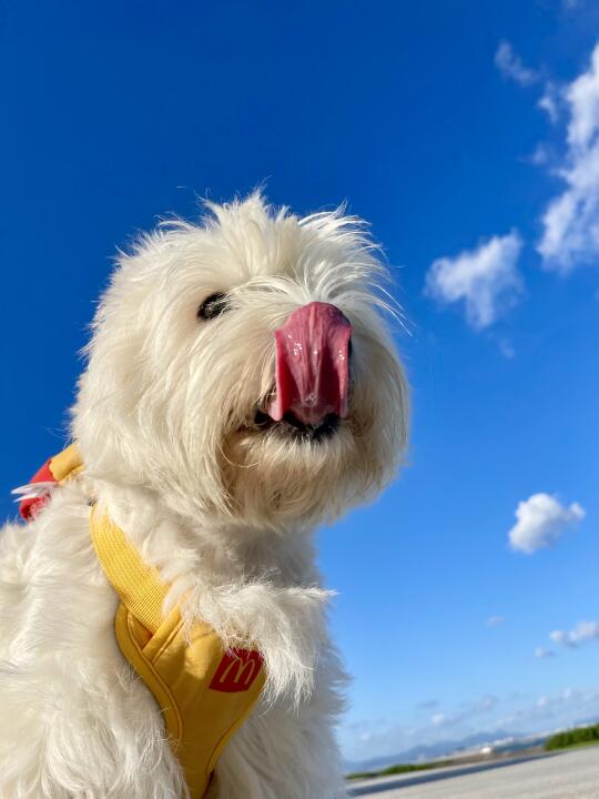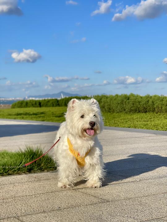 赶紧用天空给小狗拍了蓝底照!