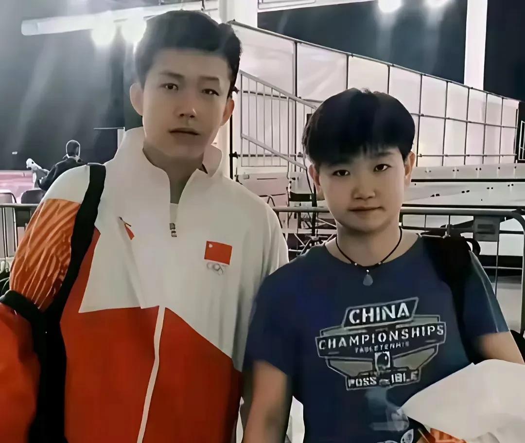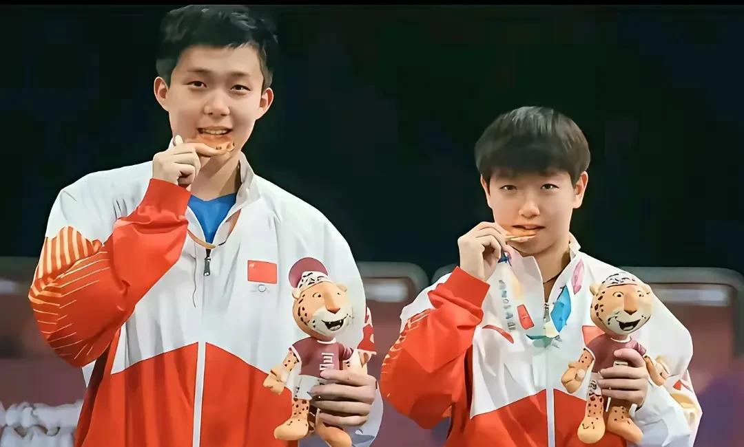 回看王楚钦和孙颖莎在一生一次的青奥会上的照片,王楚钦用金牌圈住了孙颖莎,虽然他说