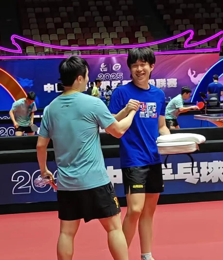 看这兄弟两个笑得多开心 乒超联赛第二阶段即将开启, 各俱乐部的队员在赛场训练。 训练结束后, 樊振东和王楚钦这两个好久不见的队友, 乐呵呵地击掌问候。 他们见到彼此是真心的高兴, 王楚钦呲着大牙笑得眼睛都没了。 这一幕太暖心了。 赛场上是对手, 赛场下是朋友, 两个都是顶好的运动员, 乒超加油哦!! (图片源自于网络) #晒图笔记大赛#