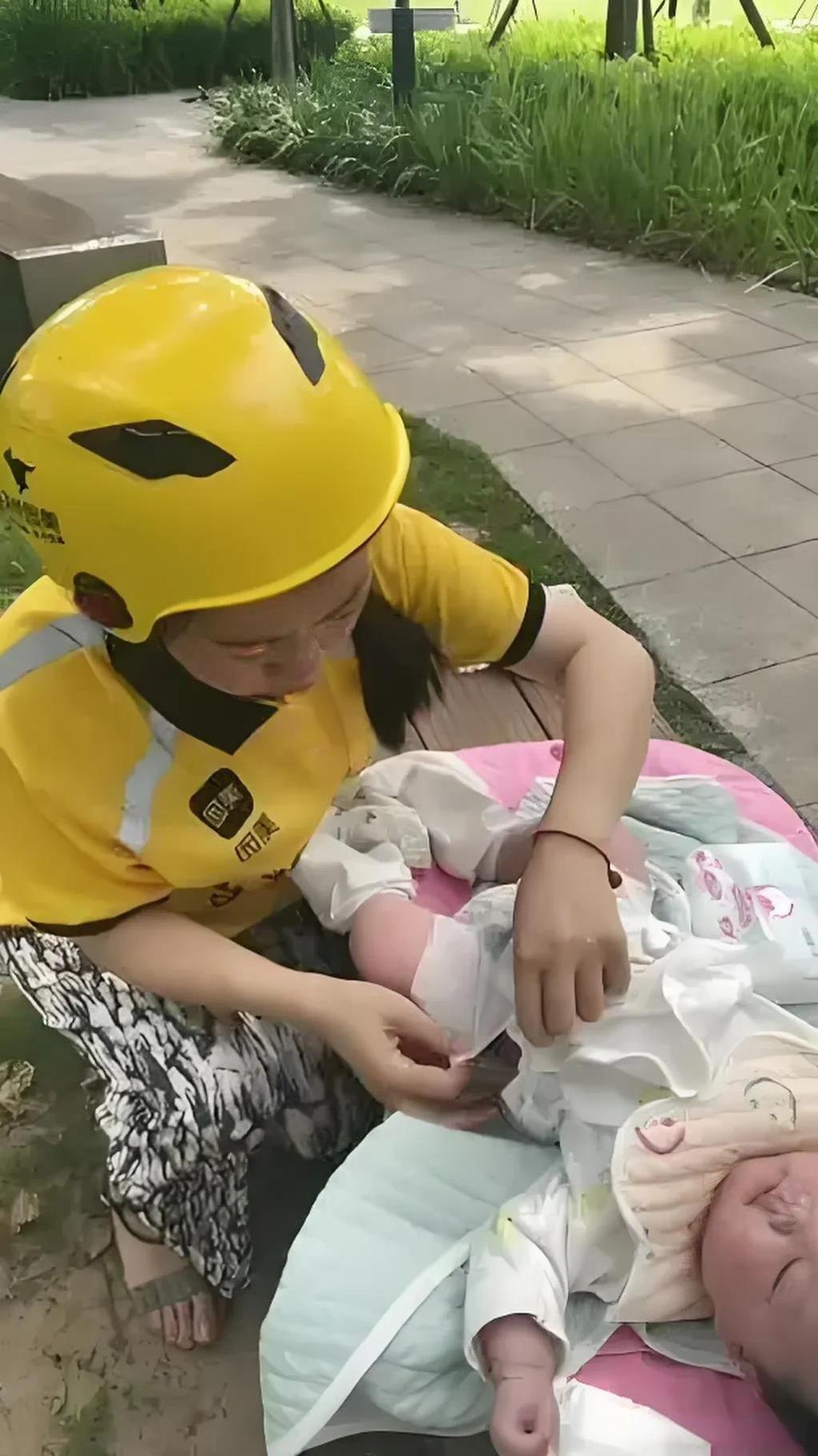 下班回来去超市买了一些日用品和零食回家。回到小区楼下看到一个大概30出头,送外卖的妈妈在长椅上给孩子换尿不湿。 小婴儿看上去也就5-6个月的样子,胖乎乎的很可爱。孩子妈妈旁边还停着一辆电动车,车上有外卖的餐食箱。 这妈妈熟练的给孩子换完尿不湿,把孩子放在腰凳上准备骑车走。 这种高温天气,但凡生活过得去,她也不冒着孩子中暑的风险,骑车带着小婴儿送外卖。我叫住她,把袋子里的酸奶和面包递给她,她一再回绝,说不能要我的东西! 我硬塞给她了,我说面包和酸奶你饿了就吃点,自己有精力了也好照顾自己和孩子。她眼含泪花的接住我递过去的面包和酸奶,用力握了握我的手说,谢谢你! 高温酷暑天气,希望大家对每一位外卖人员都能多一份理解和包容!