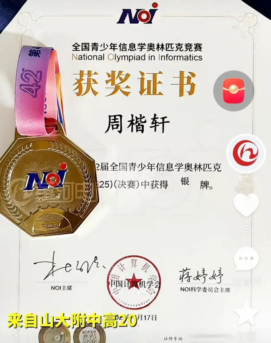 这下没人敢说山大附中不行了吧! 全国竞赛得两银!全省第一! 山大附中的2学子直接