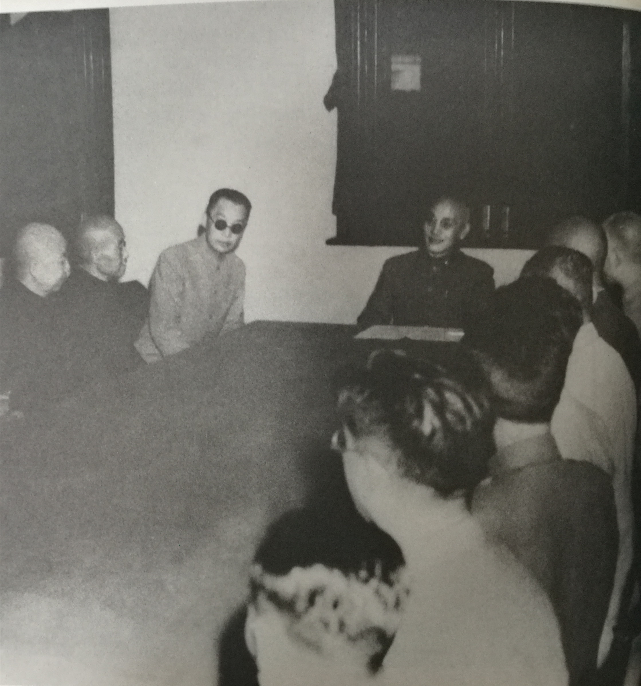 蒋介石在开会,旁边那位戴墨镜的很抢镜。他是谁?他后来成为功德林中级别最高的战犯,被改造了长达14年之久。