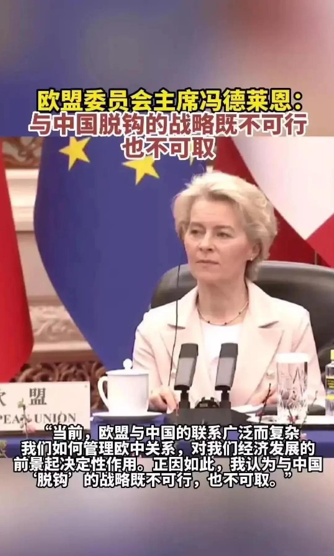 冯德莱恩说:“中欧关系的发展取决于中国对俄罗斯的态度”。 小编评论:格局放大一点