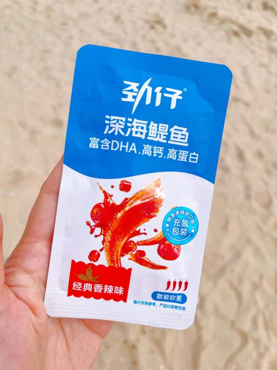 海边追浪时,从帆布包里掏出劲仔深海鳀鱼,秘制香辣料汁瞬间点燃味蕾,将海边的快乐放大了十倍! 吹着咸咸的海风,品尝浓郁鲜香的鳀鱼,看潮水把脚印揉成沙画,这种慵懒惬意比单吹海风更治愈~ 独立包装设计超贴心,撕开即食不脏手,也方便跟朋友分享,爱了~