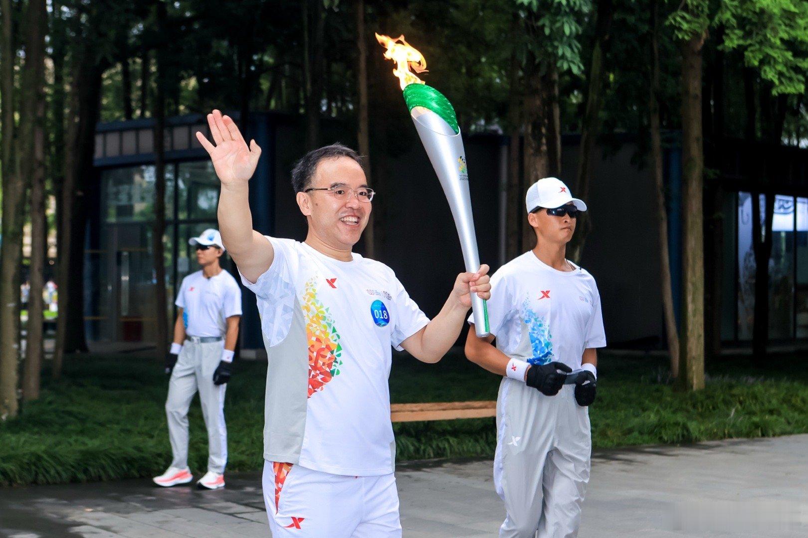 看!第18棒火炬手杨学良正以稳健而充满力量的步伐向我们跑来!