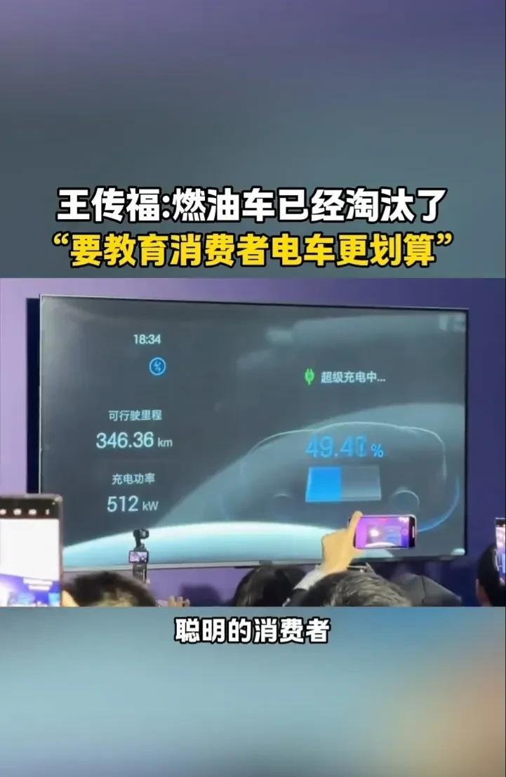 比亚迪老板王传福最近又公开表明。 燃油车已经不行了,你还让他模模糊糊的在那救他。 消费者,我们要去教育买10万块钱的电动车。 比买6万块钱的燃油车,它更加划算。我们的聪明的消费者,他还是选择电动车。 王总为了宣传电动汽车真是煞费苦心。