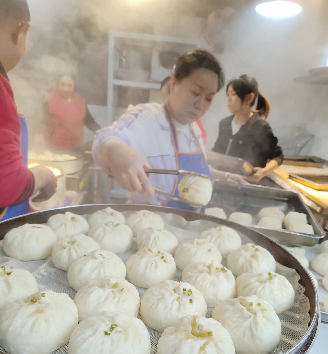 村里有一户女子开的包子铺。每天都早早起来蒸包子。因为她卖的包子馅多、皮薄且个头大