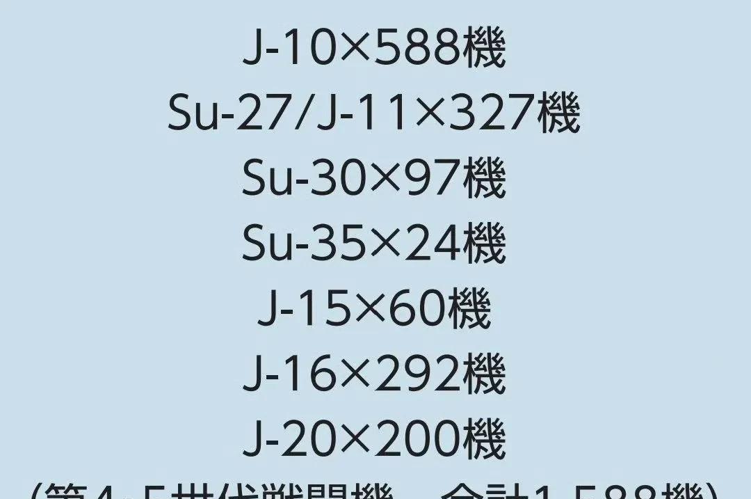相信很多人近期都看到了这两张图片,这是日本媒体做的解放军空军在2023年和2024年战斗机的数量,我们看到在一年时间里中国空军增加了20架歼10、10架歼15、20架歼16、30架歼20,共计增加了80架的战斗机,我咋觉得这个数量太少了。根据现有公开的消息,我总觉得中国目前至少有1800架以上的四代机和五代机。而且这一数量还在持续的增加当中,每年至少有120——150架。 至于日本媒体的报道我觉得大家完全不用当真的,不管他们再怎么报道,都是为了自己的利益所服务的。
