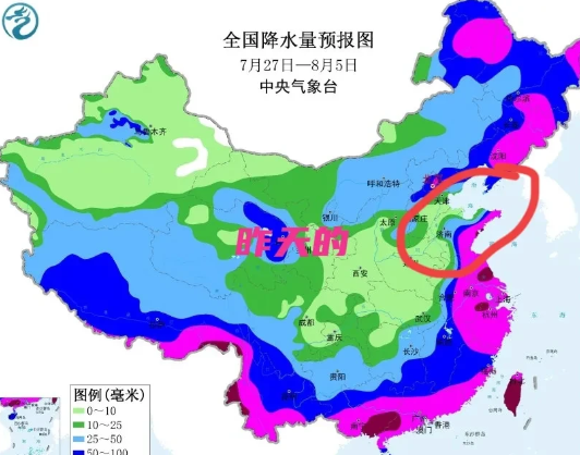 中央气象台今天的中期降水量预报图和昨天的预报图相对照,已经大幅度调弱了鲁东南地区的降水量,暴雨区范围明显缩小,这雨还没有下强降雨范围就缩小了,台风雨去哪里了呢??