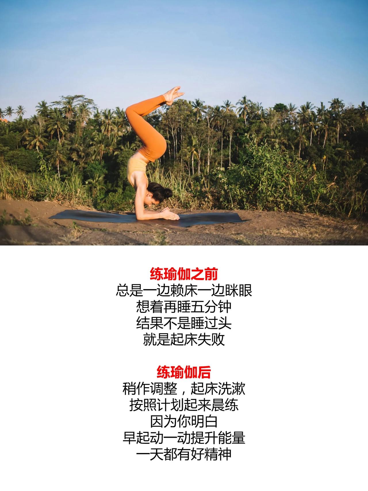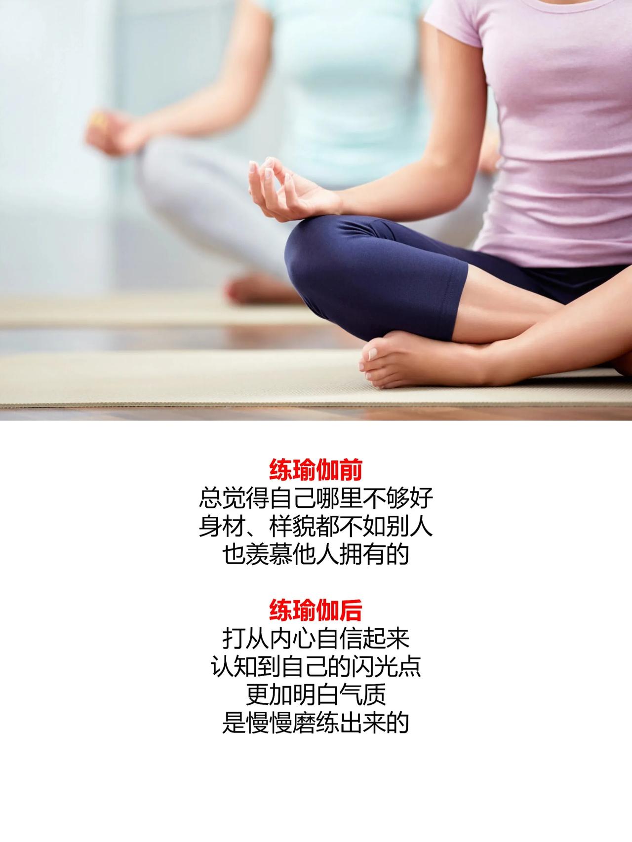 练瑜伽VS不练瑜伽女人,区别到底有多大❓ 1⃣️练瑜伽之前总是一边赖床一边眯眼想着再睡五分钟结果不是睡过头就是起床失败 🥰练瑜伽后稍作调整,起床洗漱按照计划起来晨练因为你明白早起动一动提升能量一天都有好精神 - 2⃣️练瑜伽前感觉喝水都会胖摸摸自己的拜拜肉大肚腩、塌塌臀真是一愁莫展 🥰练瑜伽后体重虽然没降多少但肌肉紧致了许久未见你的朋友都说你变瘦了 - 3⃣️练瑜伽前总是加班、加班、加班永远有一堆做不完的工作等着你 🥰练瑜伽后工作效率提高做事更细心、果决因为下班后还要赶紧去上瑜伽课 - 4⃣️练瑜伽前经常会享受短暂的舒适快乐肆意挥霍健康🥰练瑜伽后明白身体健康才是本钱喜欢汗水滋润每一寸肌肤用运动换取身体健康 - 5⃣️练瑜伽前总觉得自己哪里不够好身材、样貌都不如别人也羡慕他人拥有的 🥰练瑜伽后打从内心自信起来认知到自己的闪光点更加明白气质是慢慢磨练出来的 -