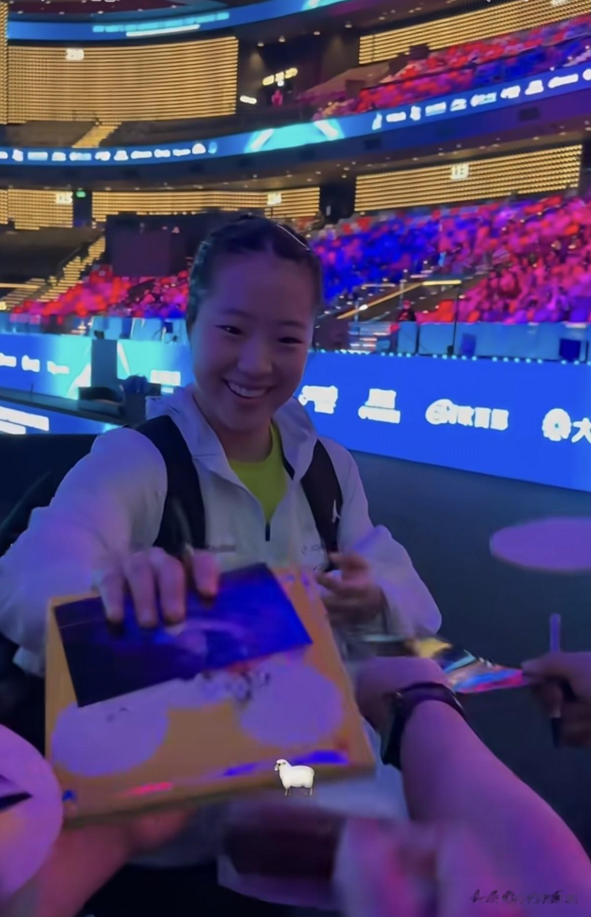 莎莎入场的时候,看到小杨也来到了现场,这个位置看比赛应该挺好的,看到有个女生还过去找小杨签名了。莎莎在成都封训的时候,小杨就去了成都,在澳门莎莎每天也能见到小杨,真好!