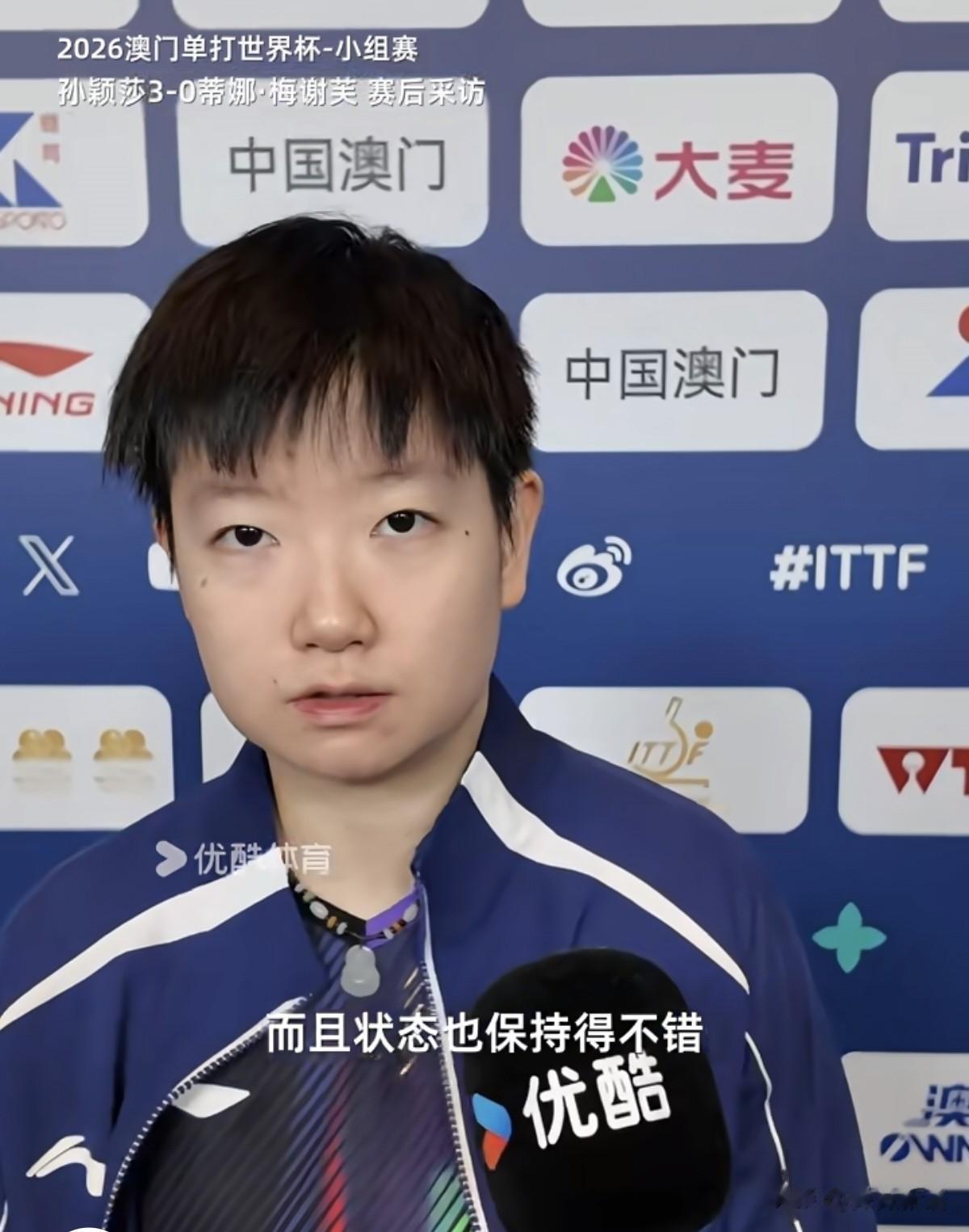 在赛后采访中,莎莎也讲了很多,总结了今天的比赛,莎莎说梅谢芙的无谓失误很少,而且她手感还是非常不错的。莎莎每次都是先肯定对手,对于接下来的比赛,莎莎说:“自己的状态整体来说还是保持的不错吧。我还是希望自己即将面临这种淘汰赛,我觉得大家的水平其实都非常接近,而且都在伯仲之间。而且第二阶段淘汰赛也是7局4胜,我相信自己还是困难准备做足,然后整个的身体状态还是调整到最好吧,以最好的精神面貌去拼。”