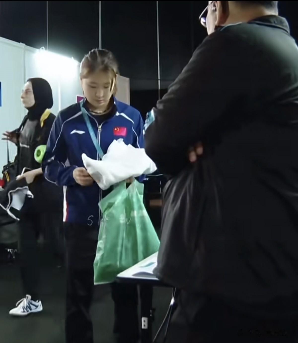 现在每次出去打比赛,有时候佳佳不跟赛,朱梓予会一直在莎莎的身边,今天球拍送检也是朱梓予拿着去的,看她小心翼翼的看护着莎莎的球拍。今天莎莎的比赛场外还是马琳,在赛前马琳也去帮莎莎挑球了,现在的比赛,马琳都会给莎莎和曼昱做场外,今天晚上王曼昱还有一场比赛,比赛加油哦!