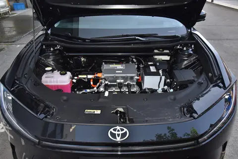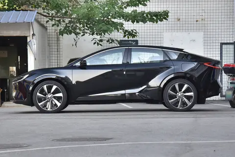刚见到这台墨渊黑的bZ5就打破了我对丰田的刻板印象,以前总觉得丰田车偏“稳重”甚至老气,这台的“锤头鲨”前脸却清爽利落——贯穿式LED灯带横亘车头,和两侧C形日行灯无缝衔接,没有多余镀铬装饰,黑色车身搭配精致线条,看着低调又有质感。白天停在大理古城青石板路边,不会刻意吸睛却能轻易被认出;晚上点亮后灯光铺陈均匀,洱海边无路灯的乡间小路上,灯光刚好覆盖行驶路线,亮而不刺眼,实用性拉满。