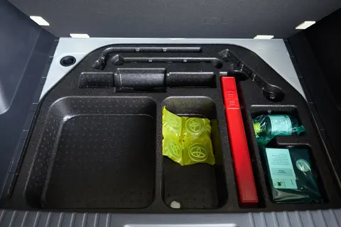 车内储物也细致,门板能放下大保温杯,中央扶手箱有分层,大理买的小纪念品不会堆在一起;无线充电板不用弯腰就能放手机,充电效率尚可;副驾储物盒也分层,驾驶证、行驶证能分门别类放好,小零碎不凌乱。