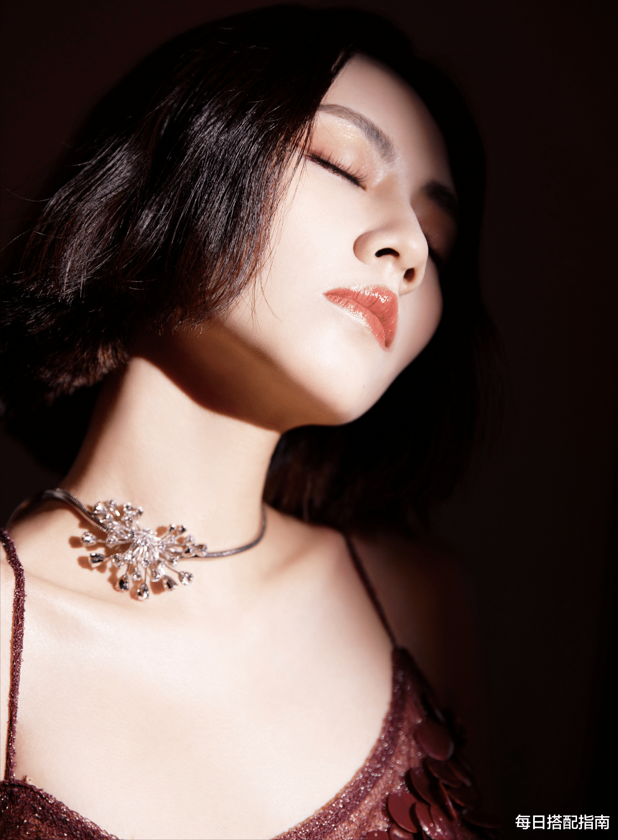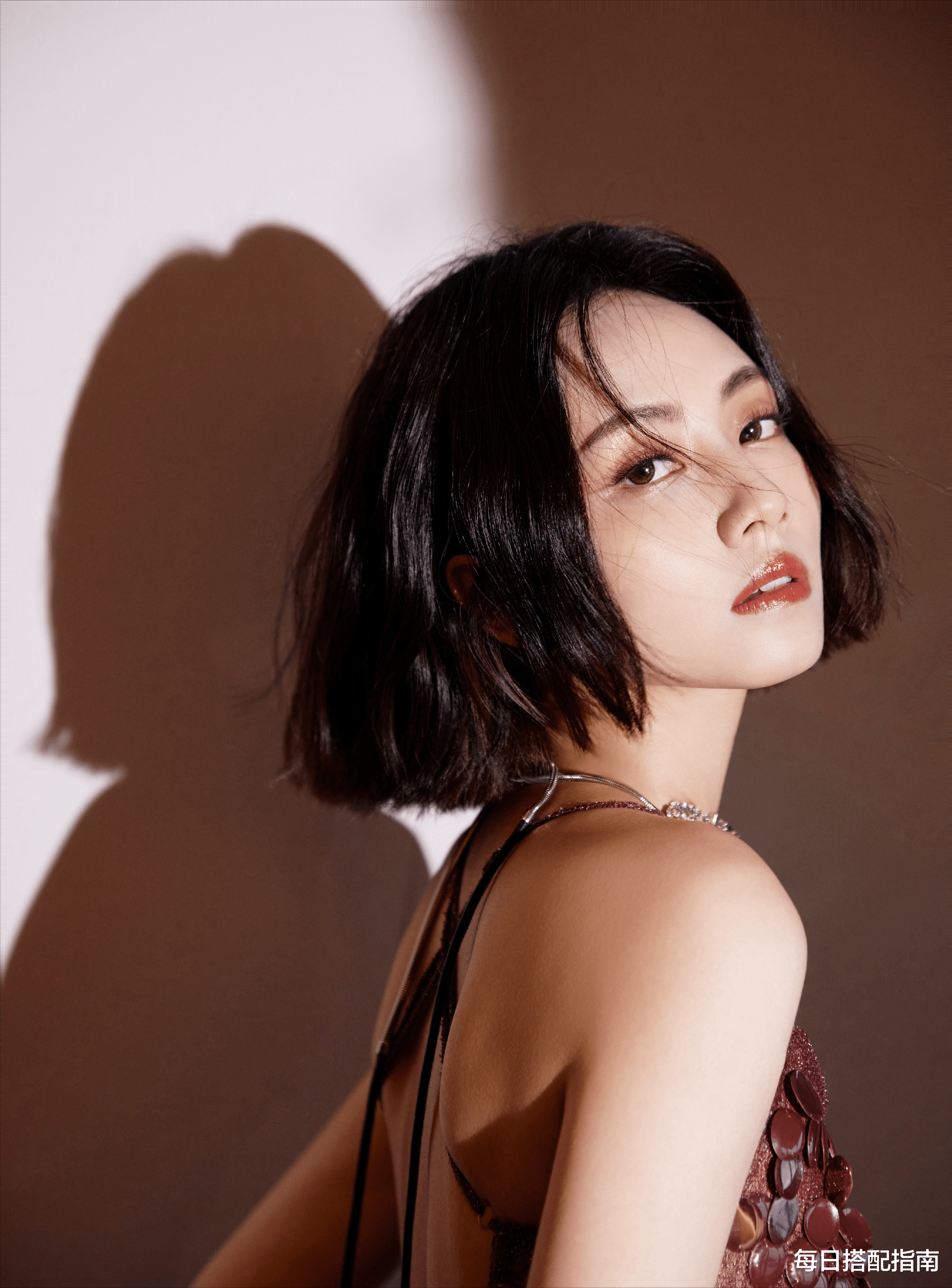 短发的线条感让整体造型更摩登。不同于长发的温柔与飘逸,短发自带一种“冷感”,能让人第一眼感受到干净和果决。这与红裙的风情叠加在一起,形成了性感与冷艳的对撞,瞬间提升了层次感。
