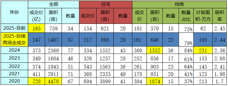 这样的背景下,前几年每年供应纯商计容面积140万方左右,2024年达到巅峰的231万方。