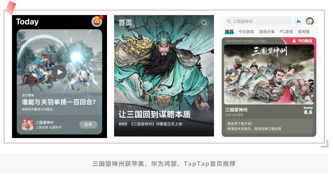公测首日,这款三国题材策略战棋游戏便引爆全网,不仅在苹果AppStore、TapTap、华为商店等平台斩获首页推荐,更实现跨圈层破圈传播。