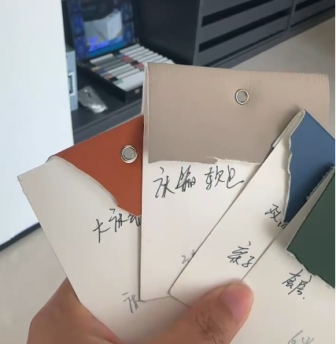 (设计约定提供的色卡和实际家具货物对比,相似度达到97%图片由聂先生提供)