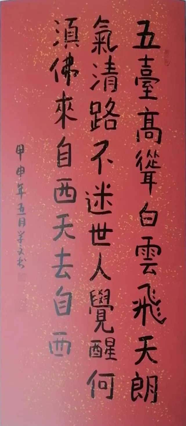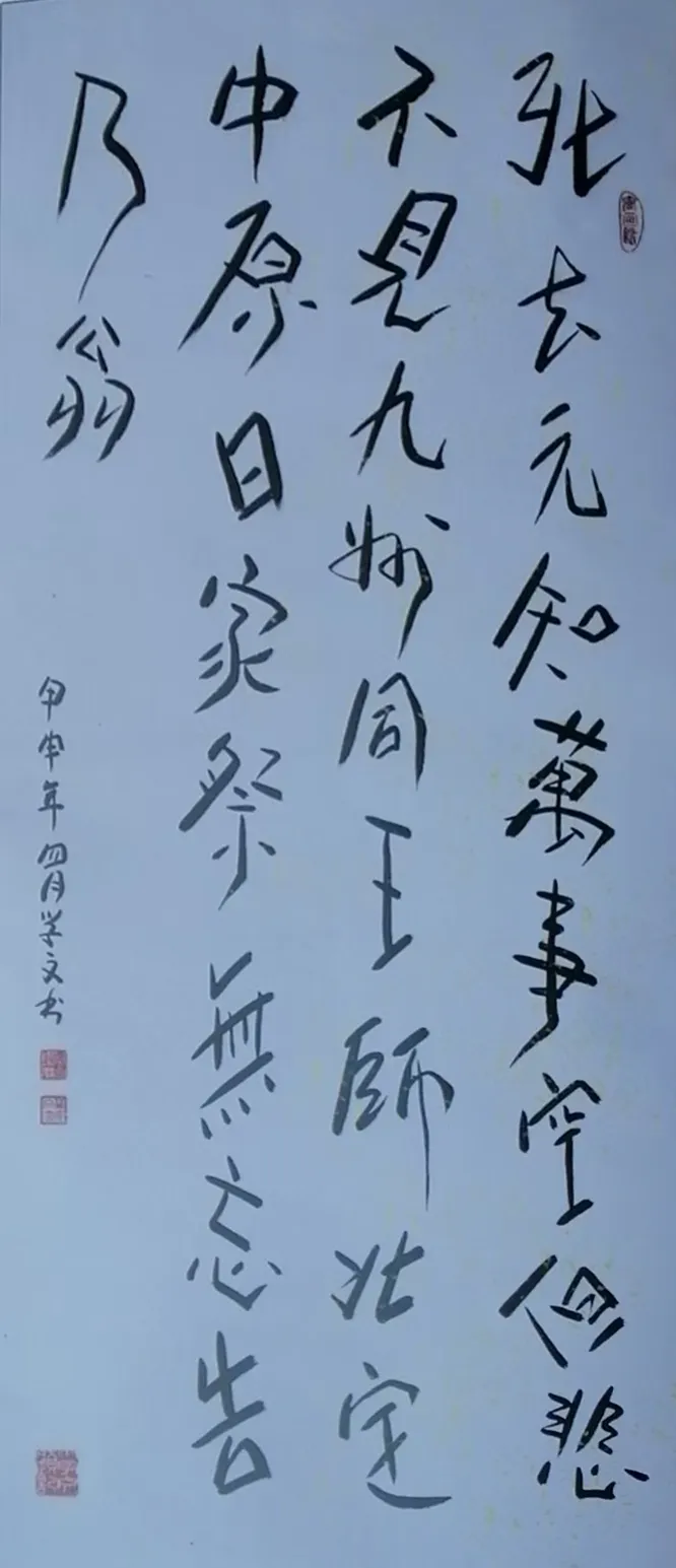 在成绩与殊荣面前,现在的学文仍一如既往的临帖、求教、探索、创作、学习、思考......学海无涯、勤奋进取、拼搏求实、在我国传统书法的沃土中,只要不断地努力,辛勤的耕耘,就一定能够收获出丰硕的成果。