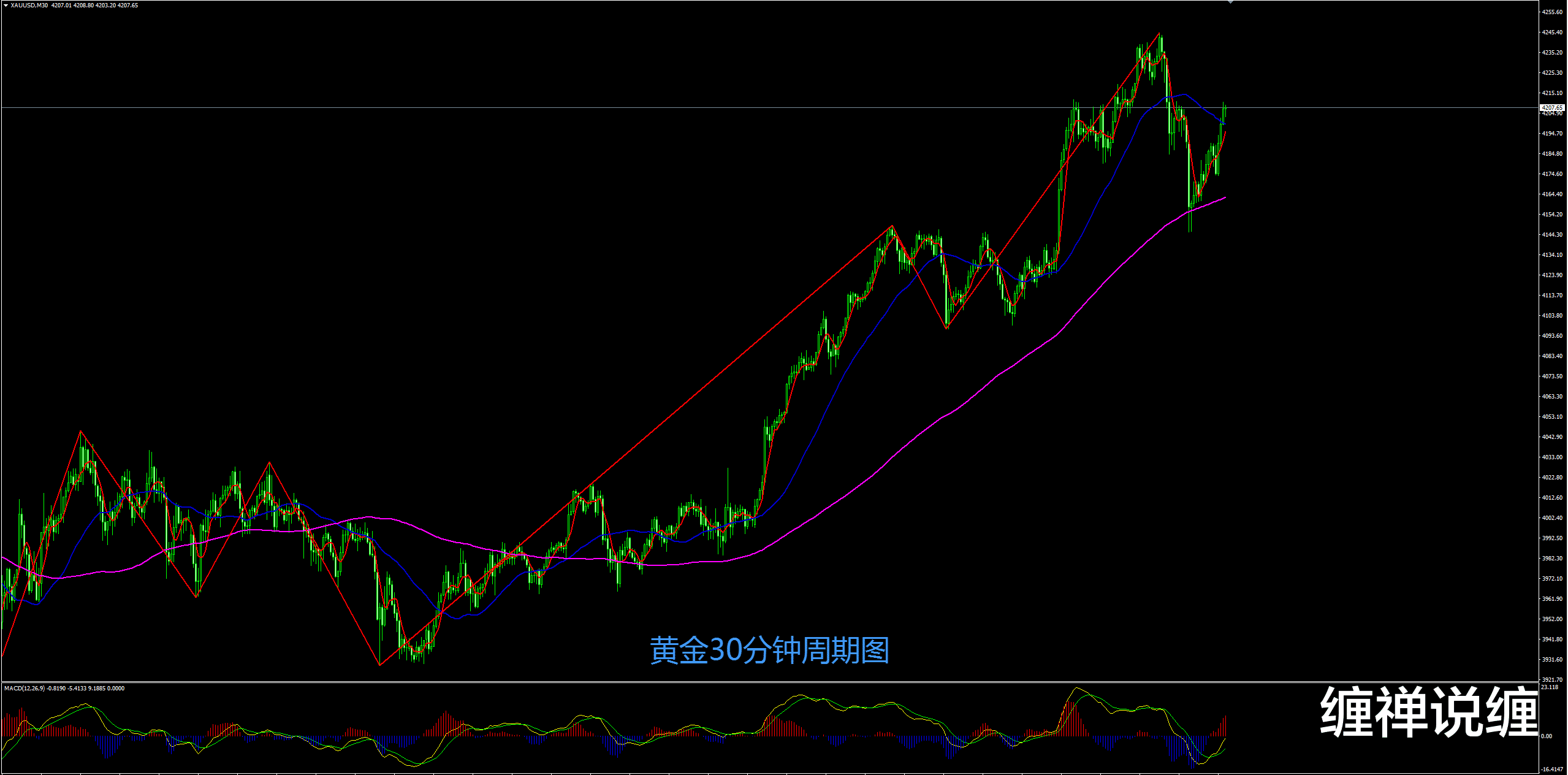黄金30分钟短线如果不能突破4245,那么黄金30分钟上涨难以延续,可能延续弱势,如果黄金继续跌破4145,那么黄金30分钟下跌有望延续。黄金短线4210附近遇阻回落,短线可以继续遇阻空,如果黄金5分钟走势长时间不能跌破4173,那么黄金短期弱势可能不能延续,那么可能开始震荡上行的节奏。黄金短线遇阻回落,短线弱势看回落!
