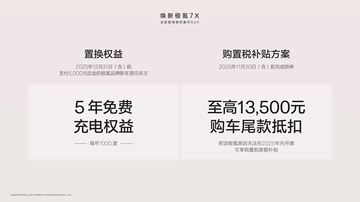 动力方面,新车升级到了900V高压架构,单电机后驱版的最大功率为370kW,最大扭矩535N·m,配75kWh神盾金砖电池和103kWh麒麟电池,对应的CLTC续航为620km和802km;双电机四驱版的最大功率为585kW,最大扭矩812N·m,配备103kWh麒麟电池,对应的CLTC续航为715km,零百加速只要2.98s。对了顶配车型拥有极氪魔毯空气悬架套装的,所以在意这个配置的朋友可以看看双电机四驱版。