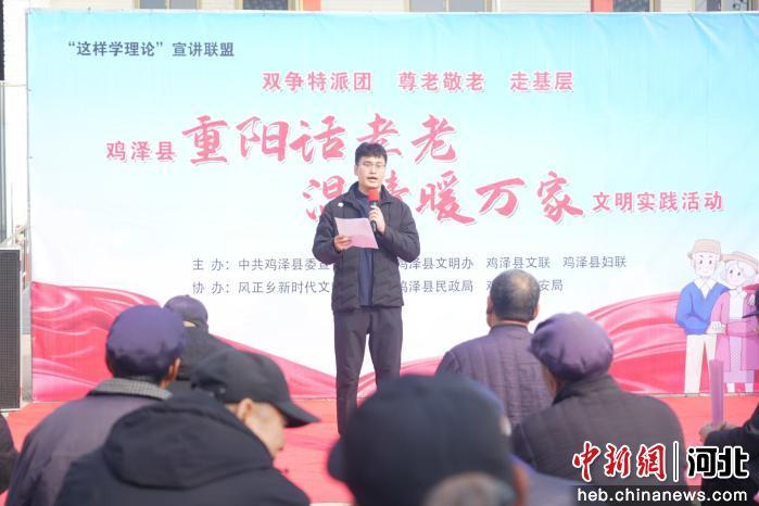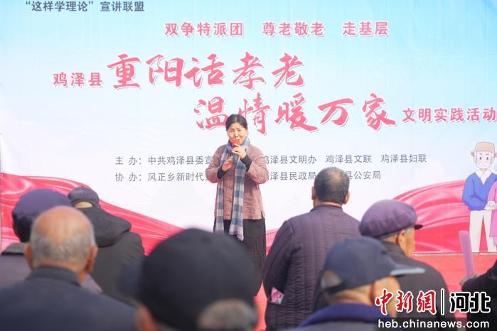 图为在鸡泽县“重阳话孝老·温情暖万家”文明实践活动现场,“身边好人”开展孝老爱亲事迹宣讲。 王佳琪 摄