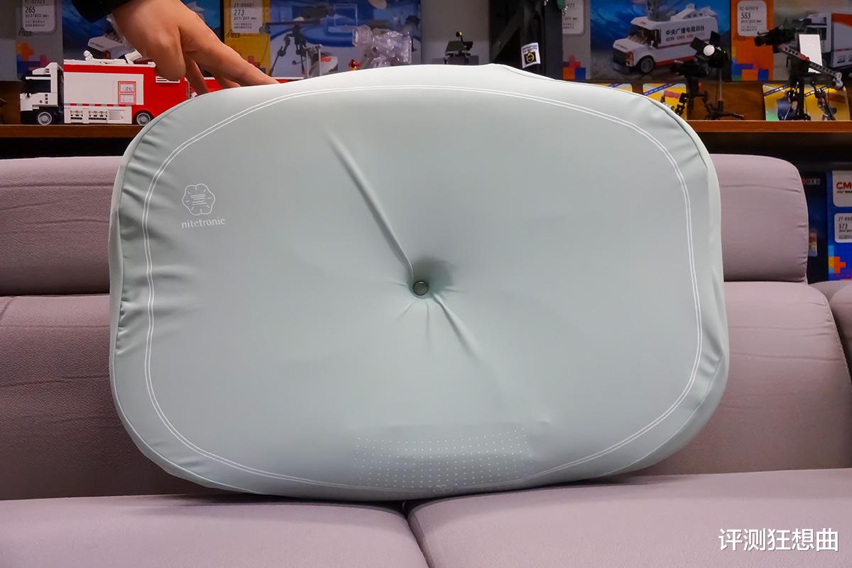 H02 Pro的气囊区域位于颈段,用户可以根据需求调节高度。默认高度偏低,更接近扁平记忆棉枕的手感;当气囊充气后,颈部支撑会变得更饱满,适合肩宽较大或偏侧睡的用户。