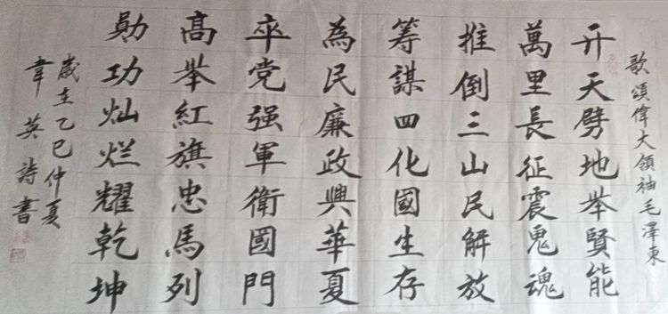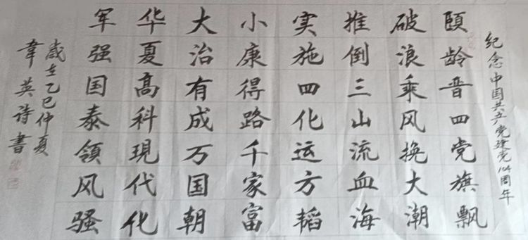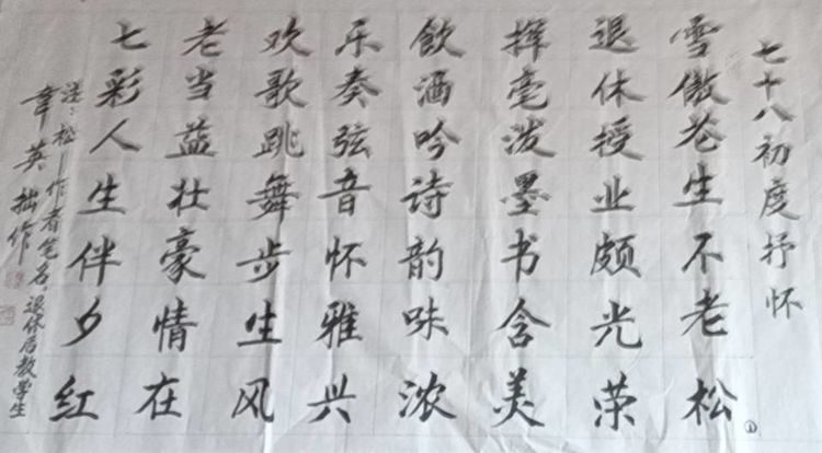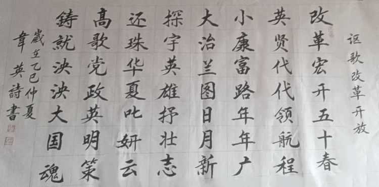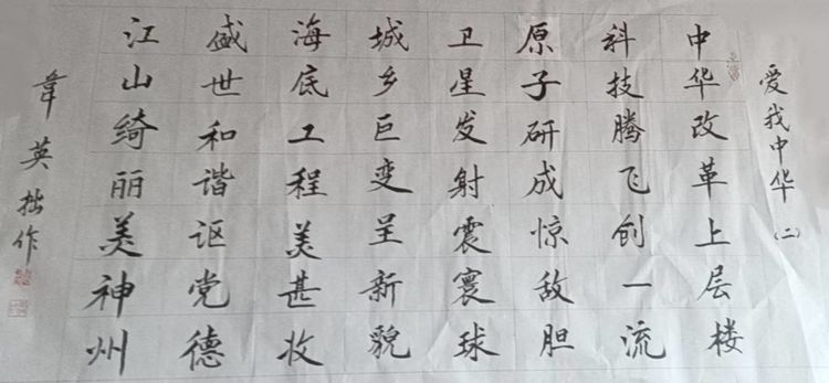 韦英,生于一九四八年。拉利中学退休教师,中国共产党党员。中国书法家、诗词家。中华诗词学会会员广西诗词学会会员、宜州区诗词学会会员、北牙瑶族乡诗词学会会长、《艺雅斋》书法培训中心教师。