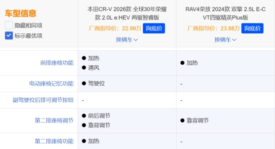在驾乘体验方面,东风本田CR-V延续了本田引以为傲的"MM空间理念",通过精心设计的内部布局,为全家出行提供了充裕的乘坐空间和储物空间,无论是全家出行还是搬家拉货,这台车都能轻松搞定。此外,第二排座椅支持前后190mm滑动调节和靠背16段32°调节,以及丰田RAV4荣放不具备的座椅加热功能,让后座的家人能享受到更舒适的乘坐体验。动力系统方面,其搭载的第四代i-MMD双电机混动系统不仅能带来充沛动力,更实现了WLTC综合油耗5.49L/100km、实测3.5L/100km的油耗表现,在城市通勤时一箱油可跑1000公里,对于关注日常使用成本的用户来说,这样的油耗表现无疑能大大缓解用户的“油耗焦虑”,切实减轻家庭长期的用车开支。