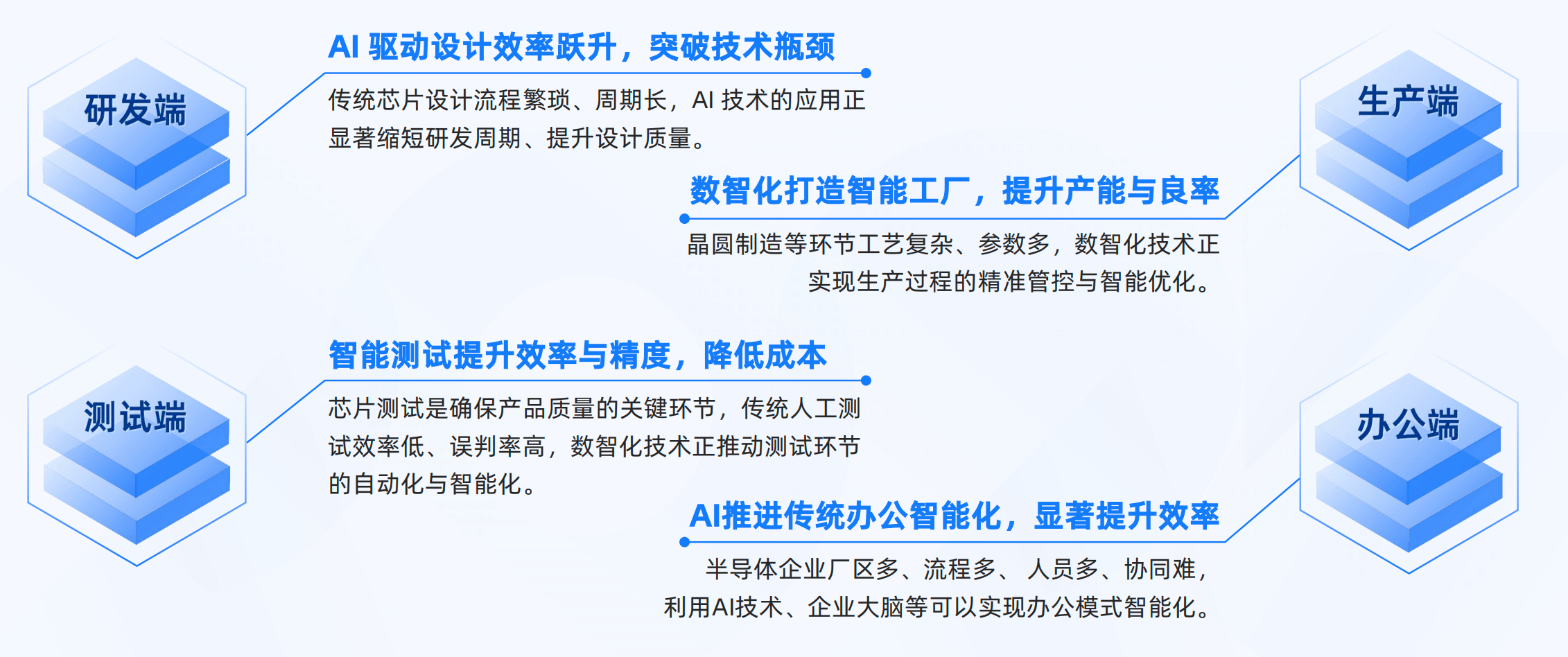 白皮书中提到:当前,数智化技术正从单点应用向全链路渗透演进,AI、大数据、工业互联网等技术与半导体研发、生产、测试、办公等环节深度融合,成为行业突破瓶颈的核心动力。