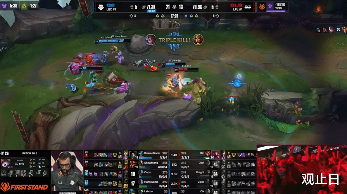 至于G2?虽败犹荣,他们用两个3-0送走了LCK,值得尊重。但今晚,主角是BLG。