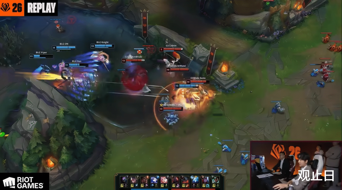 第36分钟,BLG动大龙被G2抓住机会,Caps阿萝拉三杀收割,G2一波推平基地。网友调侃:“Caps这是要把左右手都打一遍?”