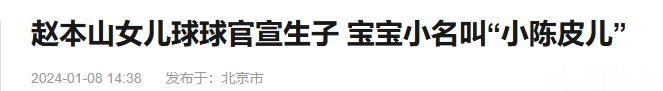 北京市2024-01-08 14:38赵本山女儿球球官宣生子 宝宝小名叫“小陈皮儿”