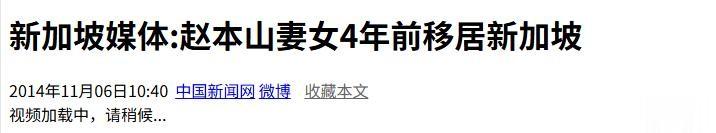 中国新闻网2014年11月06日10:40 新加坡媒体:赵本山妻女4年前移居新加坡