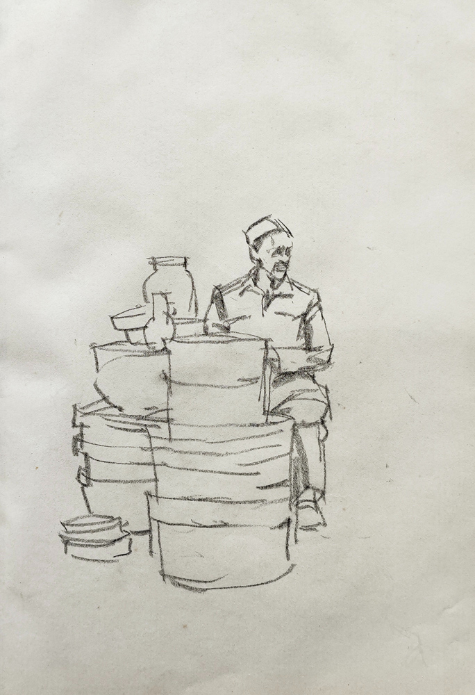 此等动态素描,非但为画,更是诗。它让观者如饮葡萄美酒,微醺中见天地,朦胧处见真章。马振江先生以笔为舟,载我们穿越时空,在素白宣纸上,遇见那片古老而鲜活的土地,遇见那些在岁月长歌中永不褪色的灵魂。这,便是动态素描的至高境界——让静止的线条跳舞,让无声的画面歌唱,让每一道墨痕都成为穿越千年的信笺,诉说着永不磨灭的坚韧与希望。