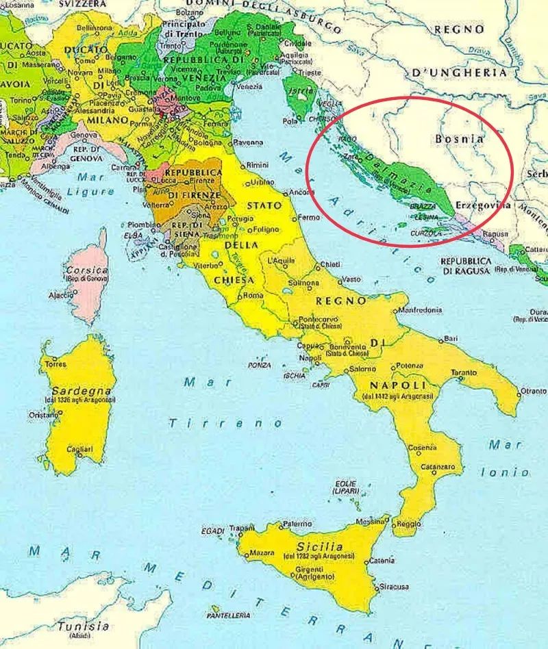 作为海上强国的威尼斯长期控制沿海的达尔马提亚,后来这块地区最终并入克罗地亚