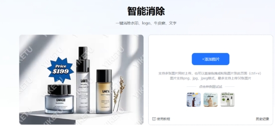 从目前市面上已有的各种去水印工具来看,易可图的智能消除功能可以说是非常好用,能够做到一次最多同时处理 50 张带相同水印的图片。具体特点如下: