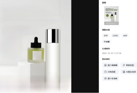 手动优化,保证质量:虽然 AI 的能力已经很强悍了,但毕竟不是十全十美,有时候在面对复杂的背景以及某些比较难识别的水印的时候,经过 AI 智能算法处理后的结果还是会有不尽如人意的地方,这个时候就需要人工来帮忙做最后一步的修整了。如果你觉得 AI 自动化处理的结果不是很满意的话,那么你可以进入到易可图自带的编辑器页面当中继续进行修改哦~相信有了这个步骤之后,你的作品会更加完美的呈现出来。