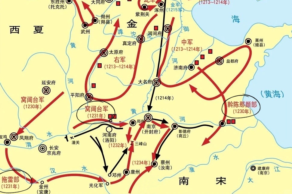 蒙古灭金进军路线图