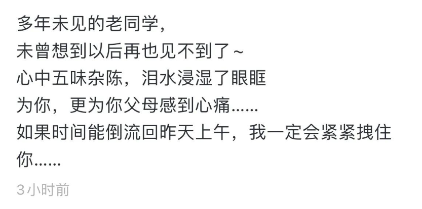 周绪阳的初中同学得知消息后,也感到震惊和惋惜,写道:“多年未见的老同学,没想到以后再也见不到了。”